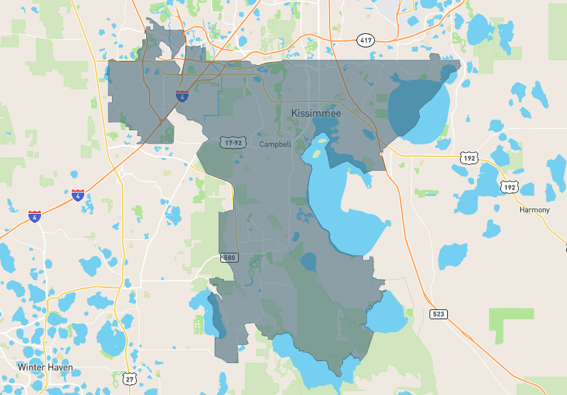 Unlike Orlando, Kissimmee has a coastal area; it borders a lake and has a beachfront.